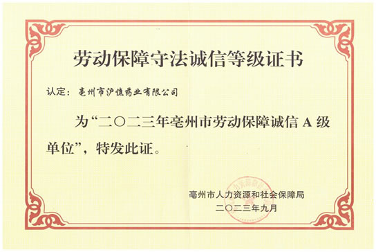 喜訊!滬譙藥業(yè)榮獲“2023年亳州...