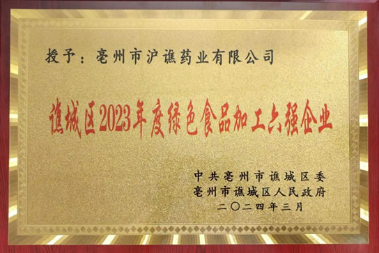 滬譙藥業(yè)榮獲“譙城區(qū)2023年度綠...