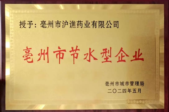滬譙藥業(yè)榮獲“亳州市節(jié)水型企業(yè)”稱...